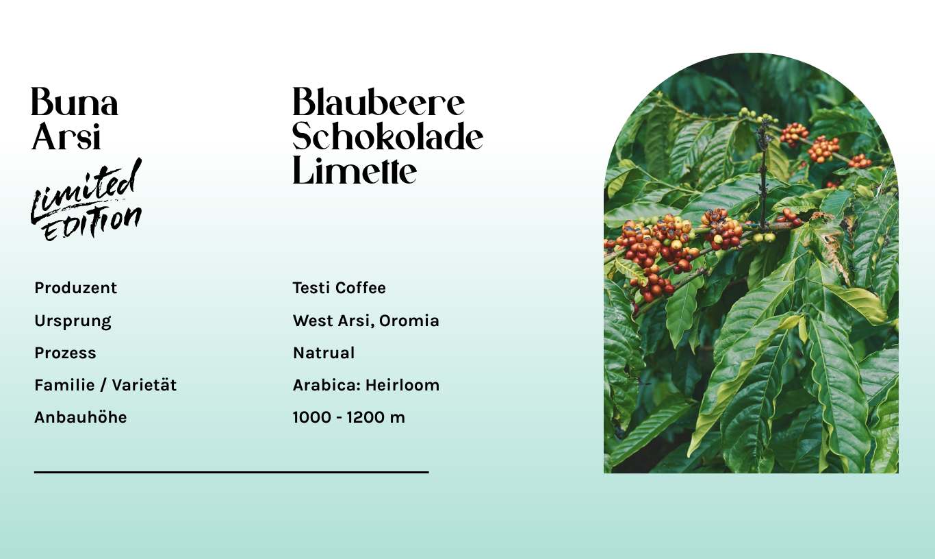 Mit Buna Arsi holst du dir ein Stück äthiopische Kaffeekultur direkt in die Tasse. Der Kaffee stammt aus der Region West Arsi in Oromia – einem der spannendsten Ursprünge für fruchtbetonte, charakterstarke Filterkaffees.