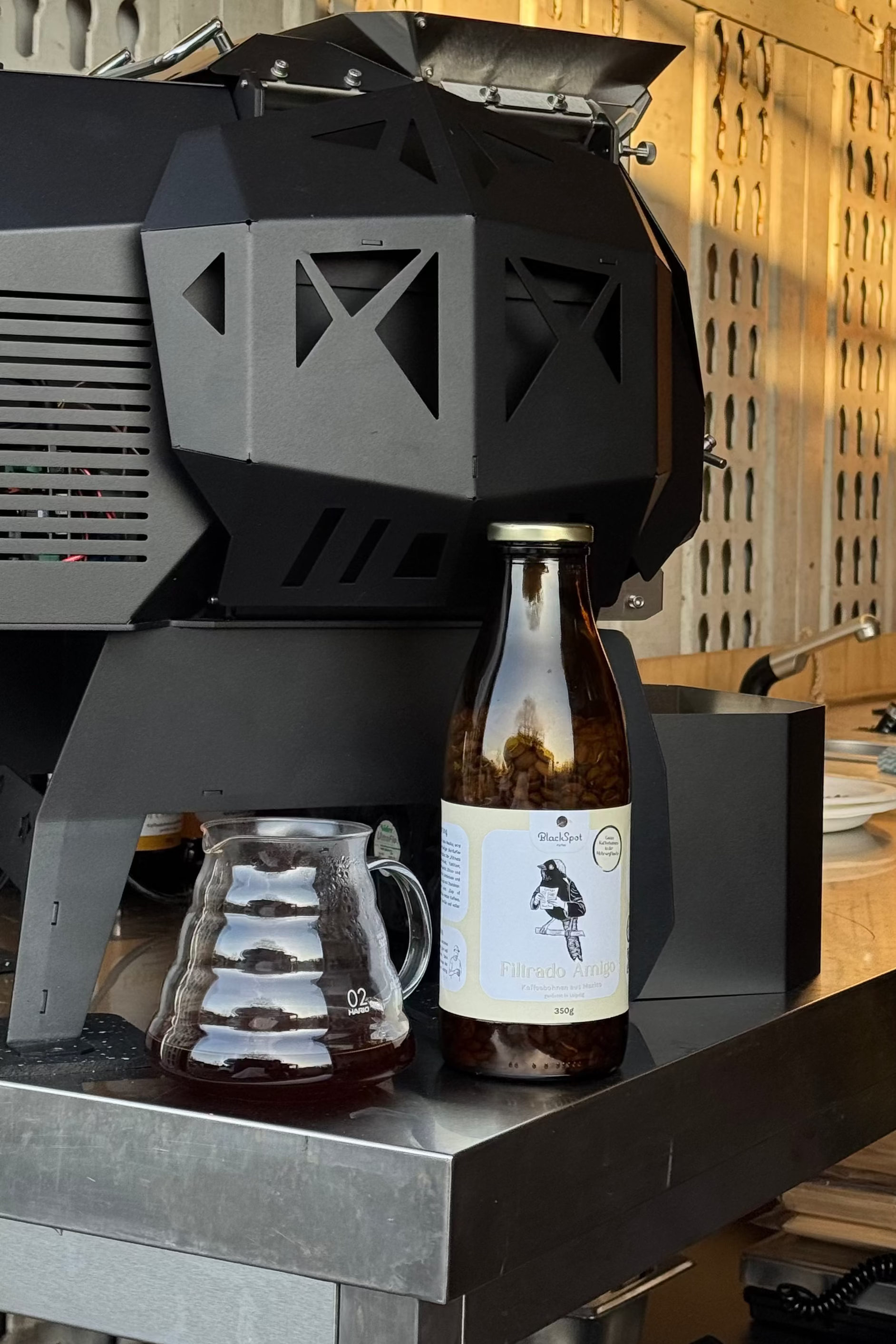 In kleinen Chargen frisch geröstet, bringt der Filtrado Amigo eine fruchtig-süße Tasse und einen ausgewogenen Körper. Dunkle Schokolade und Kakao stehen hier im Hintergrund, dafür bringt die helle Röstung die Zitrus- und Erdbeernoten in der Tasse zum Vorscheinen.